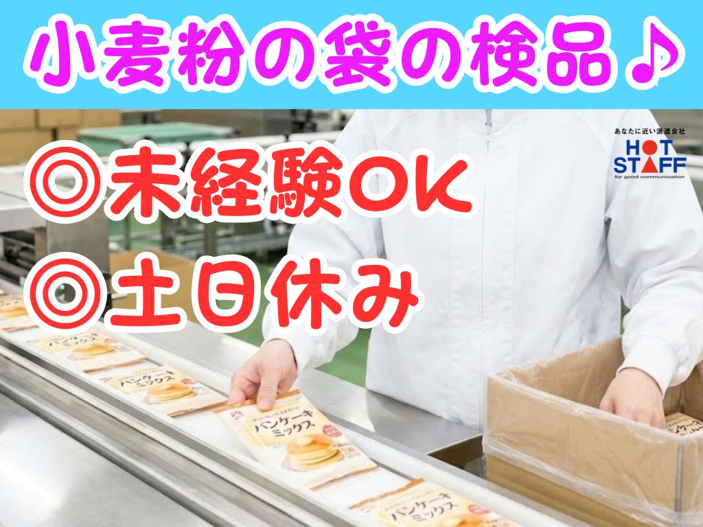 《ホットケーキミックスをポンポンして検品♪》土日休み/8:10~16:50/未経験スタートOK◎