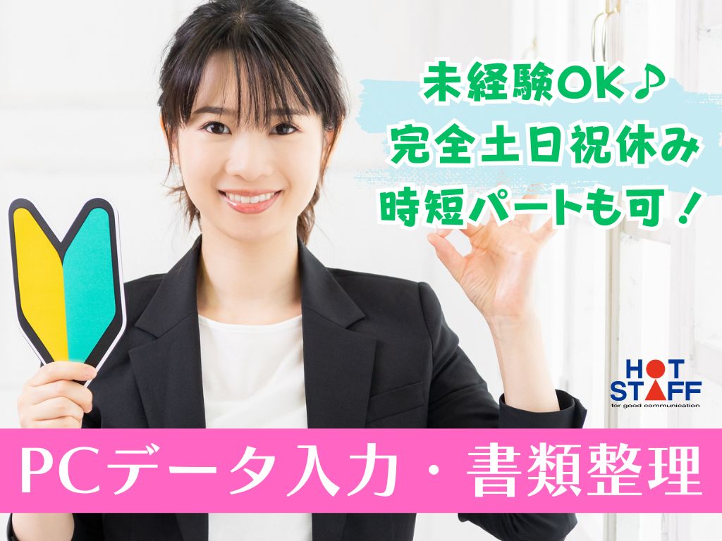 《PCデータ入力・書類整理♪》事務未経験OK/完全土日祝休み/9:00~16:00などの時短も可!