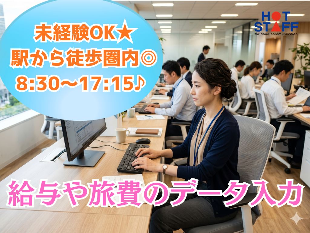 《給与や旅費のデータ入力★》事務はじめてさん歓迎/完全土日祝休み/駅チカ/8:30~17:15♪