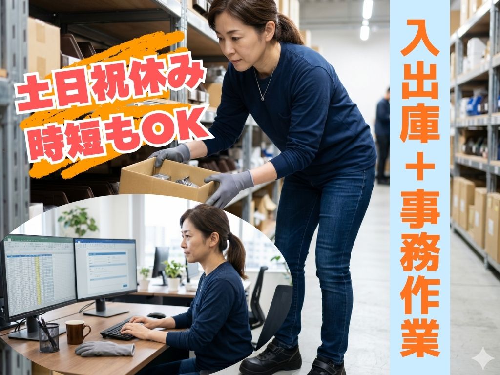 《製品の入出庫+事務作業》未経験歓迎/1日4H〜時短もOK/完全土日祝休み/9:00~18:00◎