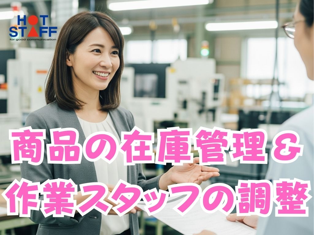 《事務スキルを活かそう・商品の在庫管理&作業スタッフの調整》空調完備/定時退勤OK/完全土日休み
