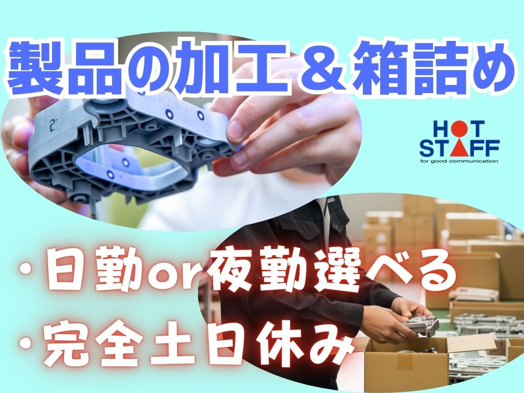 《1つの作業に集中・軽いプラスチック製品の加工&箱詰め》高収入/日勤or夜勤選べる/完全土日休み