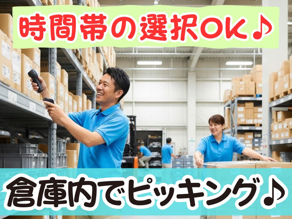 《倉庫内で車部品のピッキング&梱包》働く時間帯の選択OK/土日祝休み/福利厚生設備も充実♪