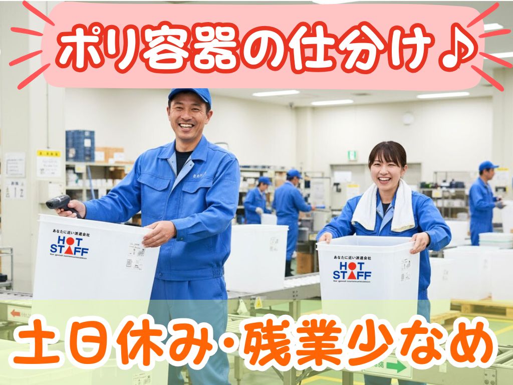 《ポリ容器の仕分け・残液処理・梱包のおシゴト♪》時短ワークOK/完全土日休み/8:00~17:20