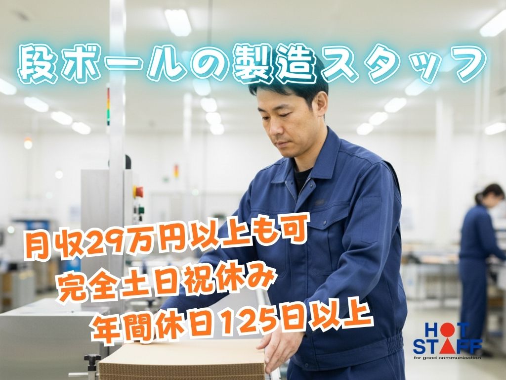 《段ボールの製造スタッフ◎》月収29万円以上も可/完全土日祝休み+年間休日125日以上/二交替制♪