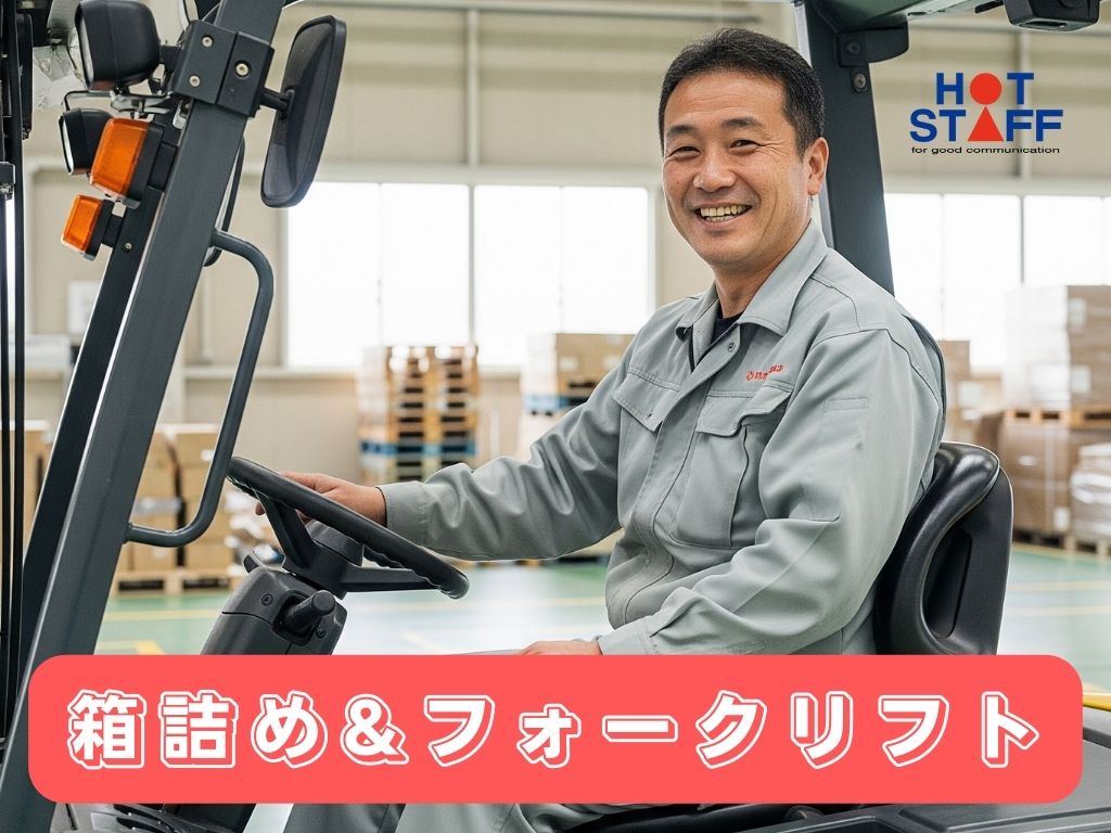 《製品の箱詰め→フォークリフトで運搬》日勤フルタイム/残業なし/完全土日休み/人間関係バツグン♪
