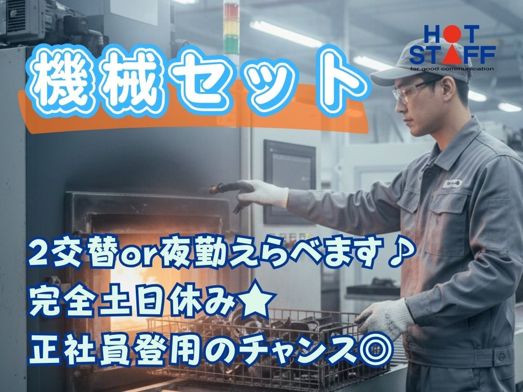 《部品入りのカゴを機械にセット★》2交替or夜勤えらべます/完全土日休み/正社員登用のチャンスあり◎