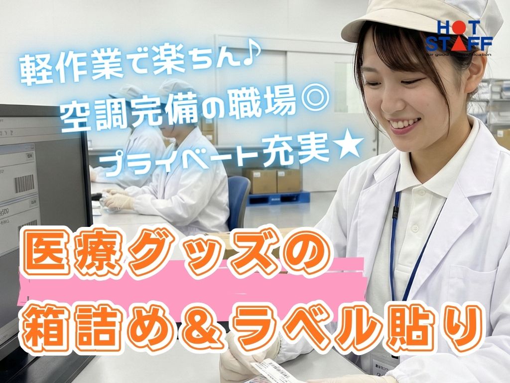 《医療グッズの箱詰め・ラベル貼り♪》軽作業/未経験OK/空調完備/完全土日祝休み+残業月20H程◎