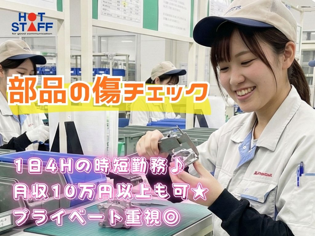 《部品の傷チェック★》軽作業/朝9時〜1日4H勤務/月収10万円以上も可/完全土日祝休み+残業なし♪