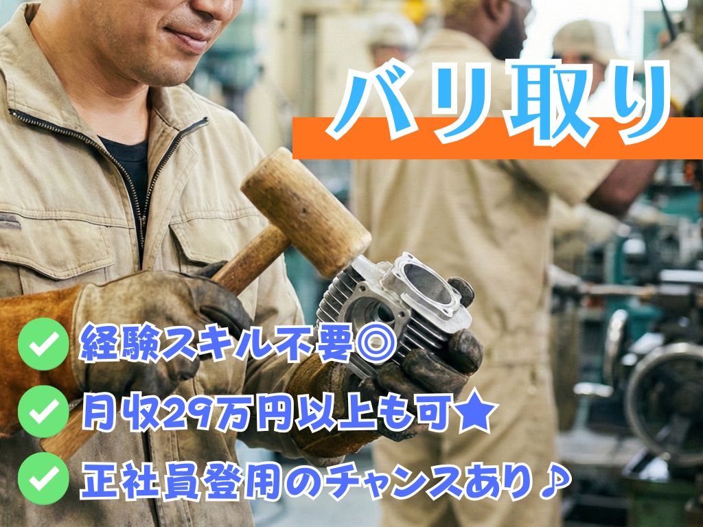 《部品のバリ取りスタッフ♪》経験スキル不要/月収29万円以上も可/正社員登用のチャンスあり/二交替★