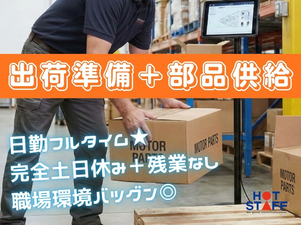 《出荷の準備+部品供給》未経験歓迎/日勤フルタイム+残業なし/完全土日休み/職場環境バツグン★