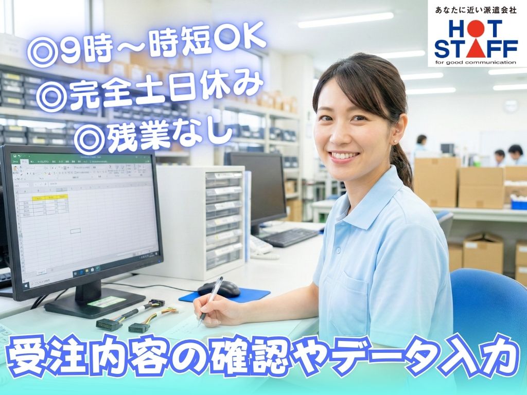 《事務経験が活かせる◎受注内容の確認やデータ入力》完全土日休み/残業なし/時間が選べる・時短OK