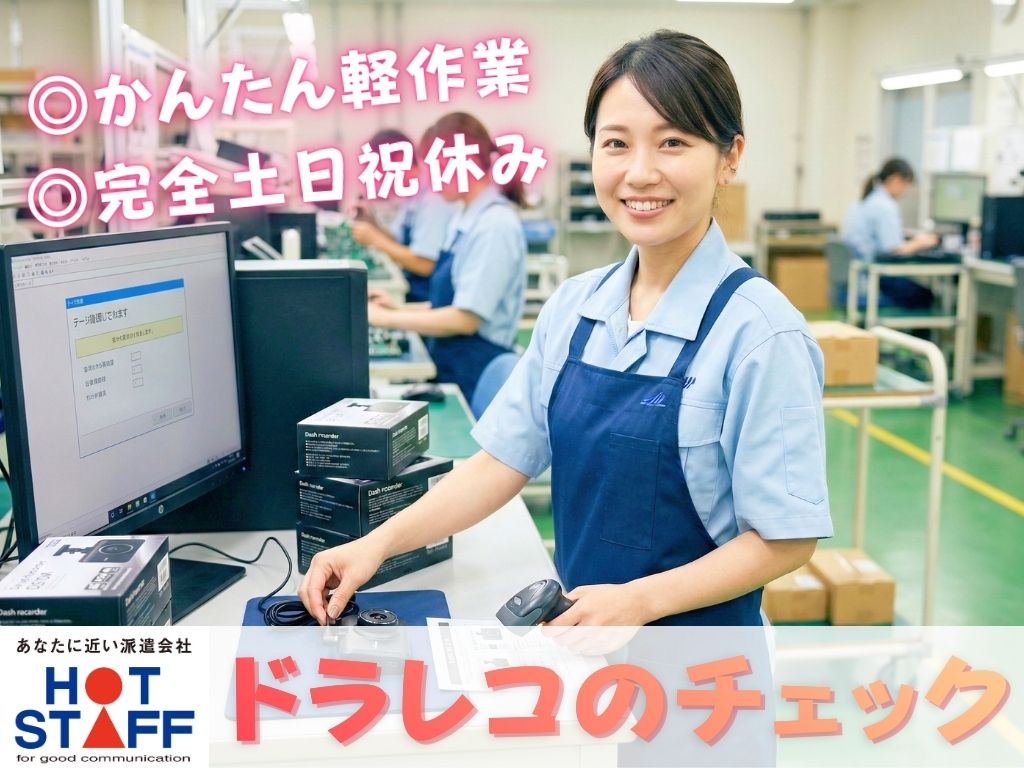 《未経験歓迎★ドラレコのチェック》かんたん軽作業/完全土日祝休み/残業なし/9:15~17:45