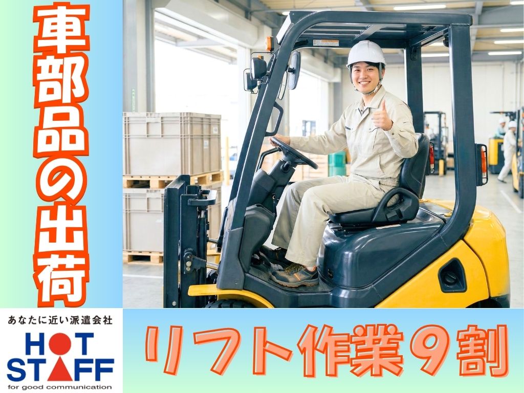 《リフト作業8割・車部品の入出荷》月収27万円以上も可/完全土日休み/6:30~15:30