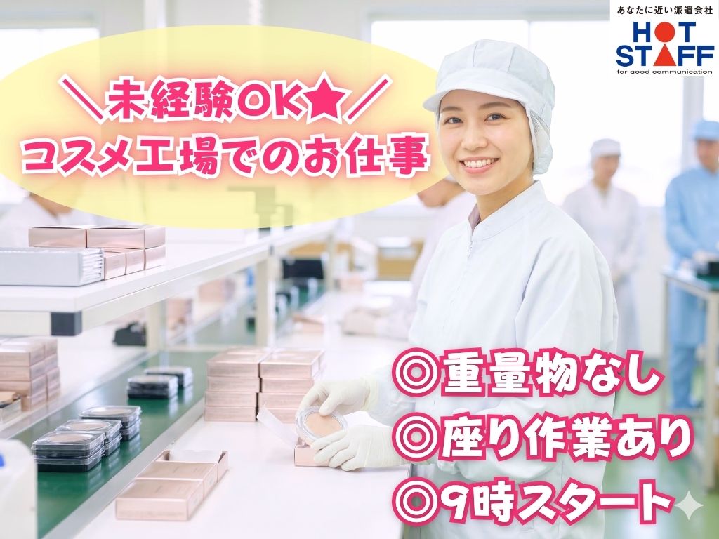 《かんたん軽作業♪化粧品のシール貼りや箱詰め》定着率バツグン/完全土日祝休み/8:30~17:15