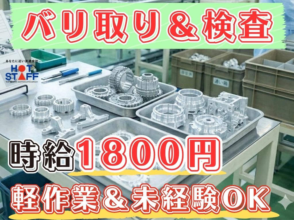 《アルミ部品のバリ取り&目視チェック!》ガッツリ稼げる3交替で月収35万円以上可★/重量物なし◎