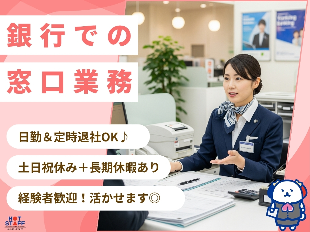 《 日勤&土日祝休み 》経験者歓迎!銀行で窓口業務・データ入力