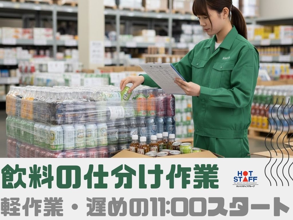 飲料の仕分け作業 〈 軽作業・遅めの11:00スタート 〉