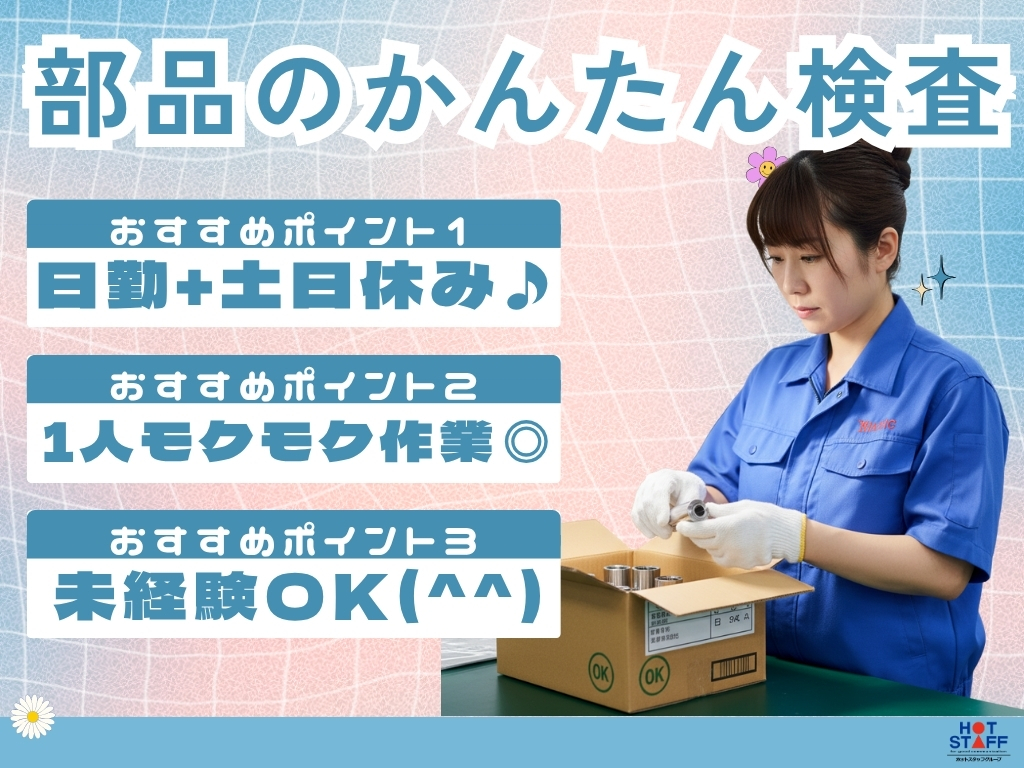 沼津市/人気の1人モクモク作業/日勤+土日休み/未経験OK!部品のかんたん検査
