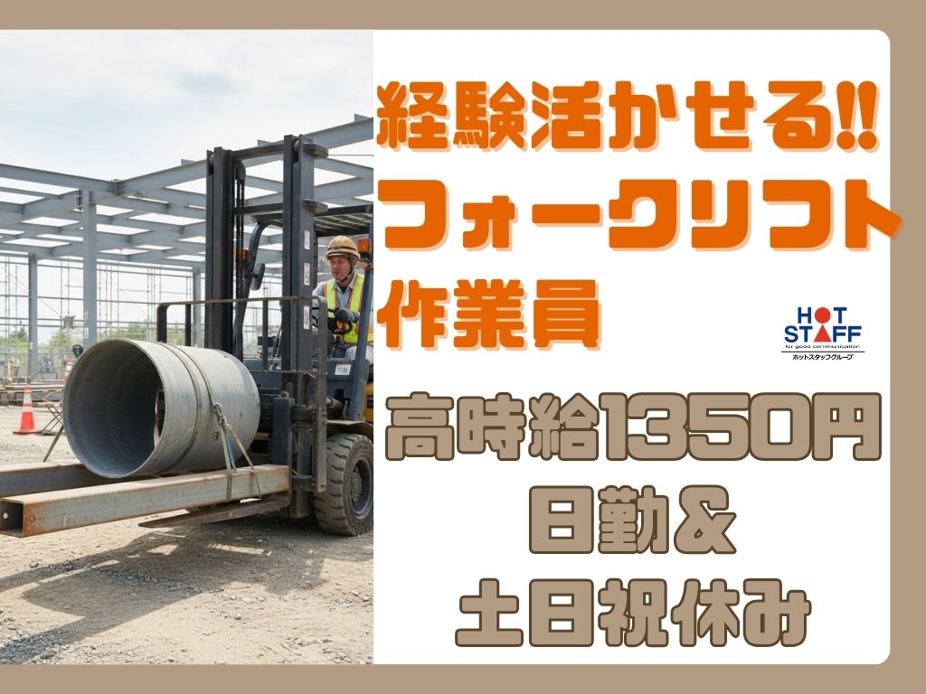 沼津市/高時給1350円/日勤&土日祝休み/経験活かせる!フォークリフト作業員募集★
