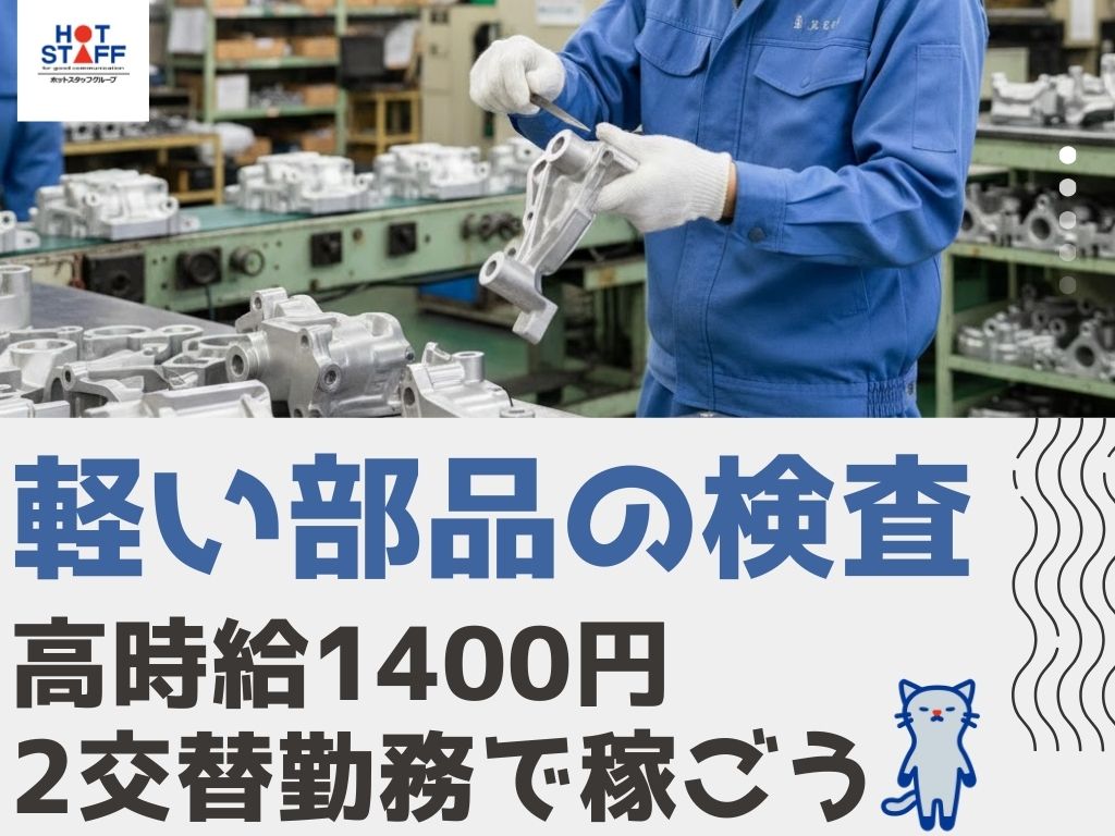 沼津市/高時給1400円/2交替勤務で稼ごう★/軽い部品のかんたん検査・バリ取り