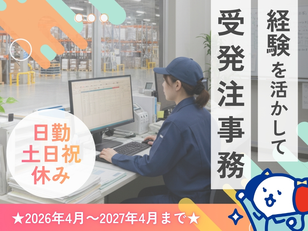 ●2026年4月~1年間の募集●御殿場市/日勤&土日祝休み◎/高時給1400円/経験活かせる!受発注事務スタッフ募集