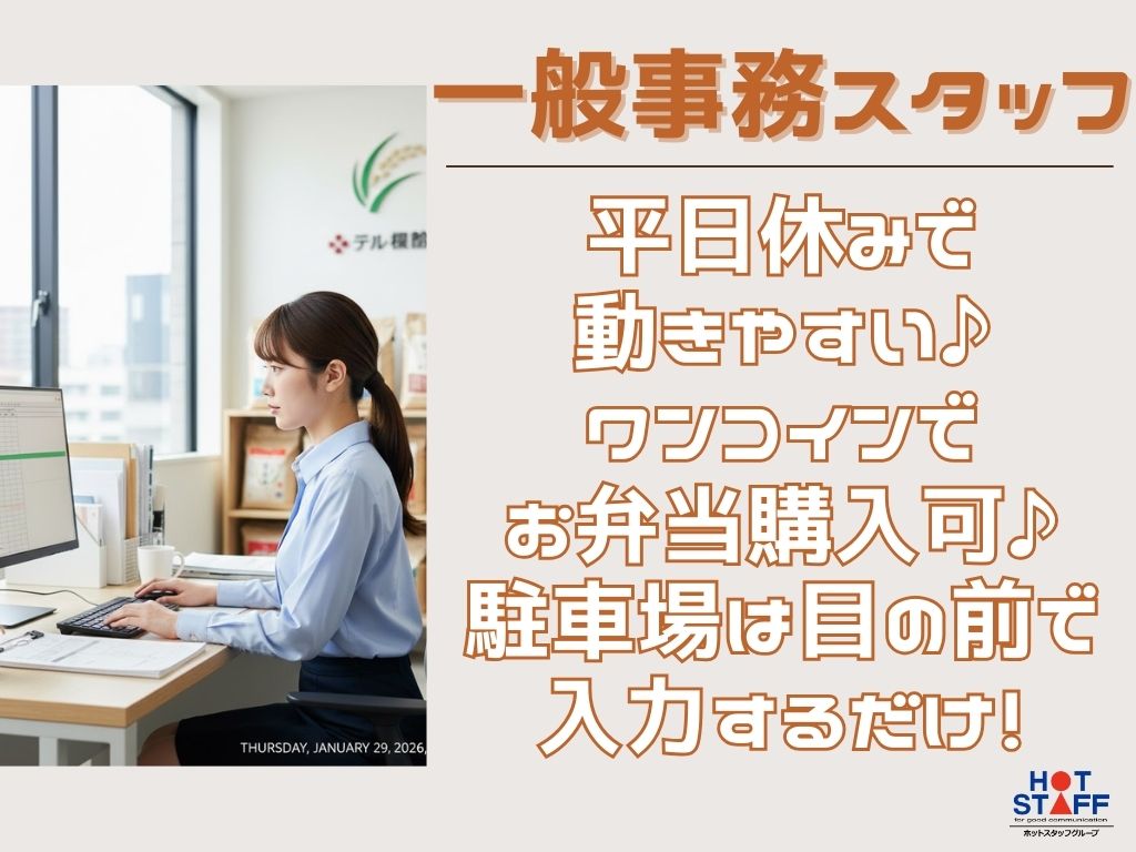 長泉町/平日休みで動きやすい♪/ワンコインでお弁当購入可/駐車場は目の前/入力するだけ!一般事務募集