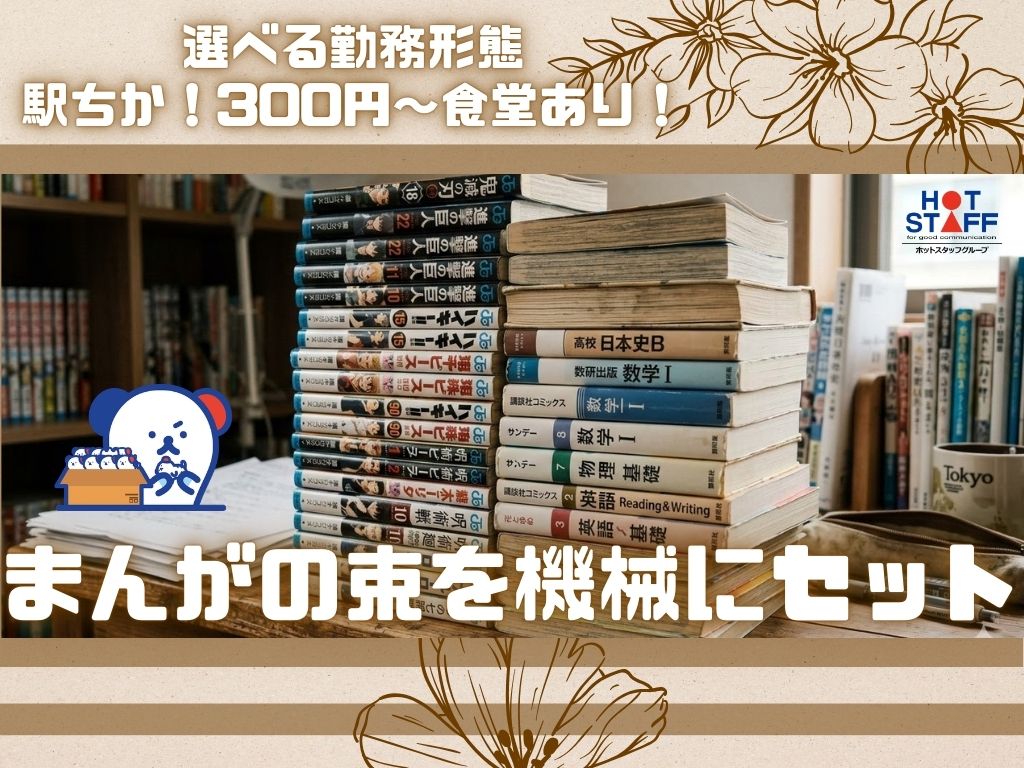 【高時給1300円!】まんがの束を機械にセット・積み上げ/選べる勤務形態(^^)/駅ちか!300円~食堂あり♪
