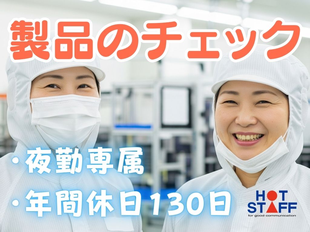 《PC操作なし・出来上がった製品のチェック》大手企業で安定/夜勤専属/年間休日130日/残業少なめ