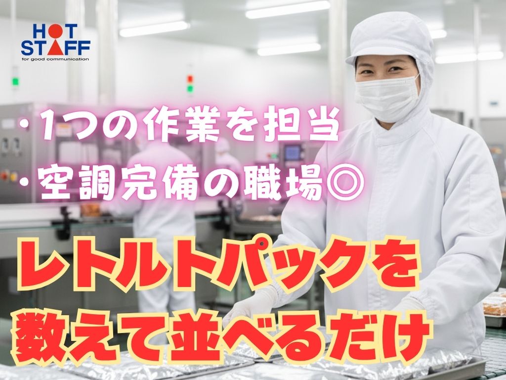 《年明けスタート♪・レトルトパックを数えて並べるだけ》1つの作業を担当/残業なし/空調完備の職場◎