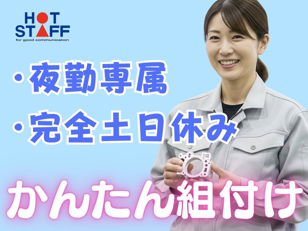 《1つの作業に集中できる・車部品のかんたん組付け》夜勤専属/完全土日休み/職場雰囲気、良好◎
