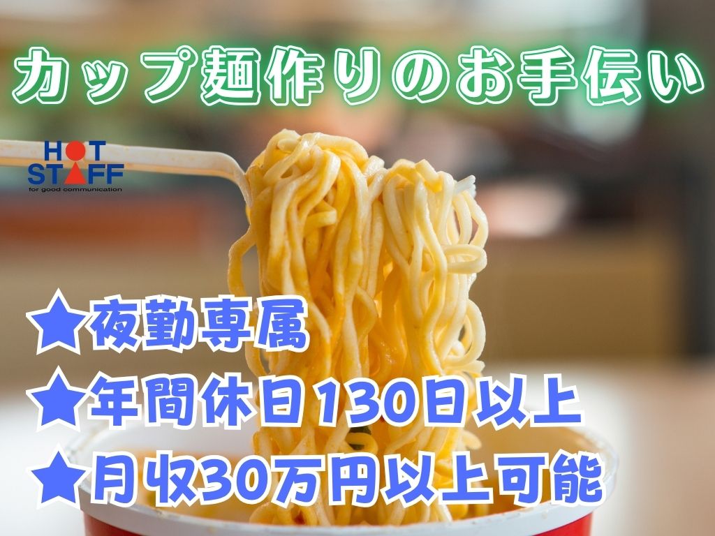 《月収30万円以上可能・カップ麺作りのお手伝いスタッフ》夜勤専属/完全土日祝休み/残業少なめ