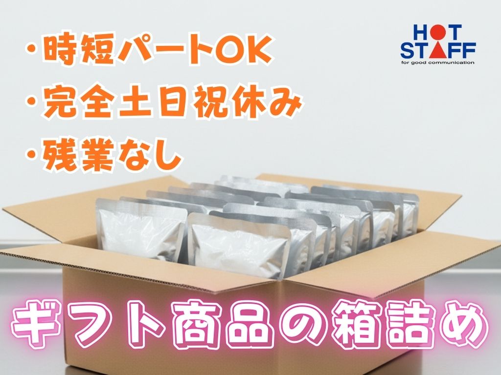 《軽作業スタッフ募集・ギフト商品のかんたん箱詰め》朝9時〜時短パートOK/完全土日祝休み/残業なし