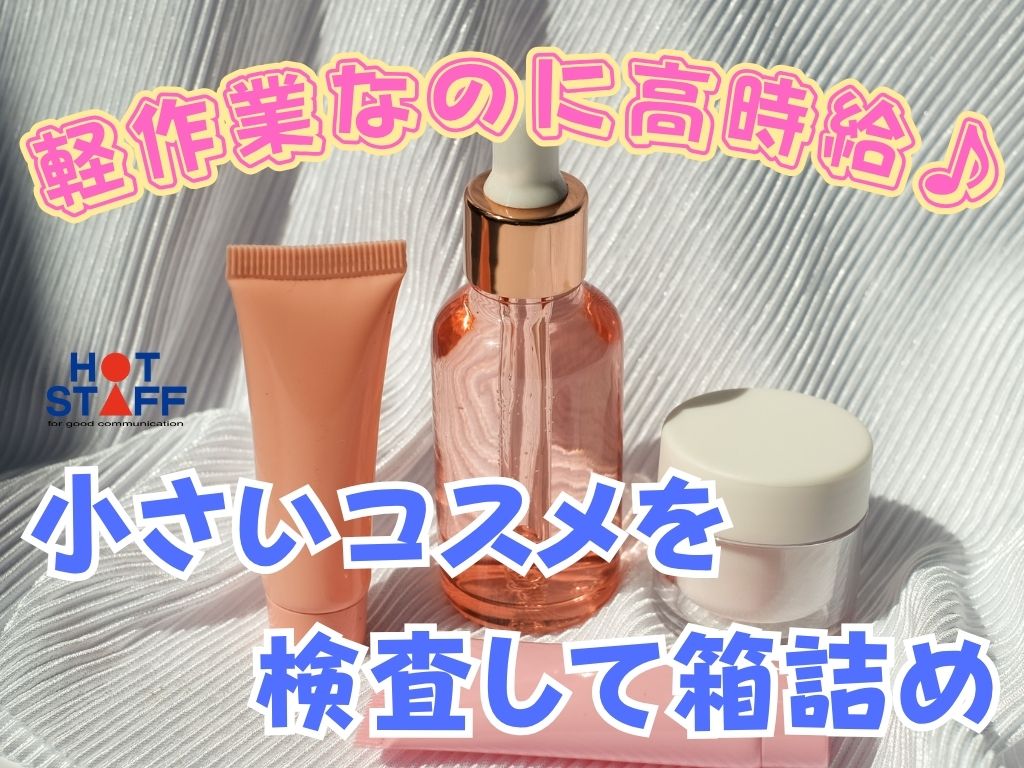 《最短1月末までの短期・座りながらコスメの充填&箱詰め》月収25万円以上も可/完全土日祝休み