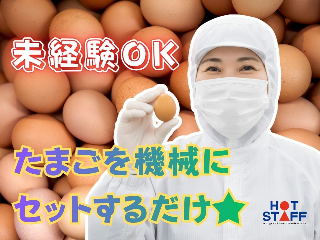 《はじめてさん大歓迎・たまごを機械にセットするだけ♪》軽作業/残業少なめ/希望の平日休みあり