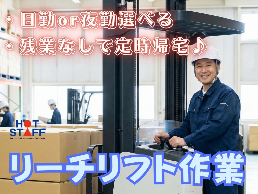 《リーチリフトを使って入出庫作業》早朝からサクッと勤務/残業なしで月収25万円以上可能/平日休みあり