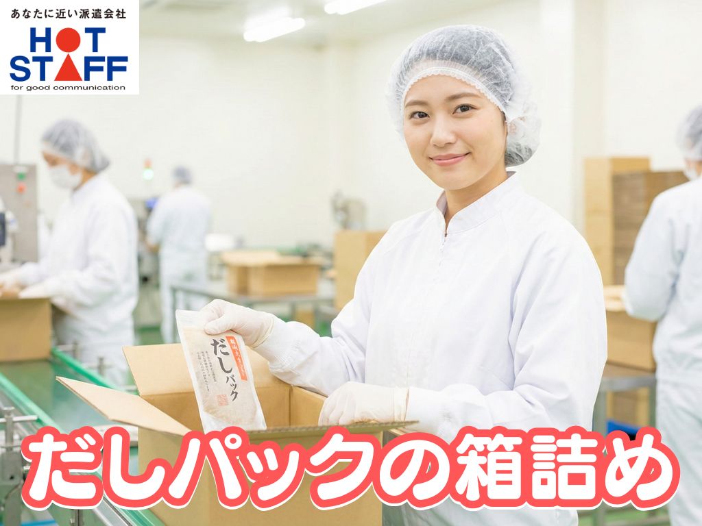 《だしパックをチェックして箱詰め》未経験歓迎/土日祝休み/時短勤務や週4日勤務も相談OK◎