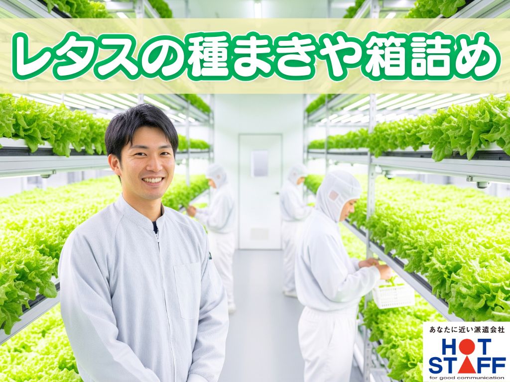 《レタスの種まきや箱詰め》水耕栽培でキレイな工場/かんたん軽作業/時短勤務や週3日休みも相談OK