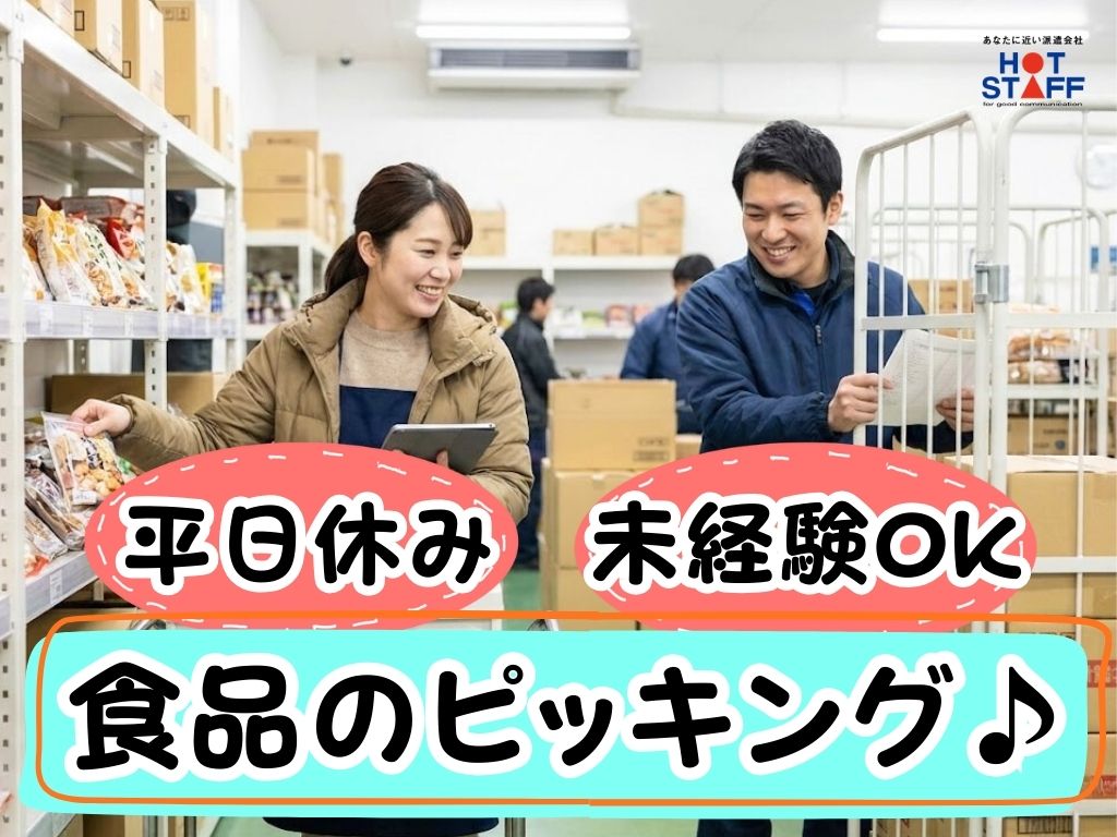 《倉庫内でスーパーに並ぶ食品を集めるだけ♪》週休2日シフト制/12:00~18:00/ネイルOK◎