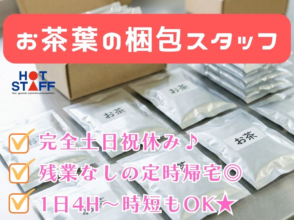 《かんたん♪お茶葉の梱包スタッフ》未経験歓迎/完全土日祝休み+残業なし/1日4H〜時短パートOK★