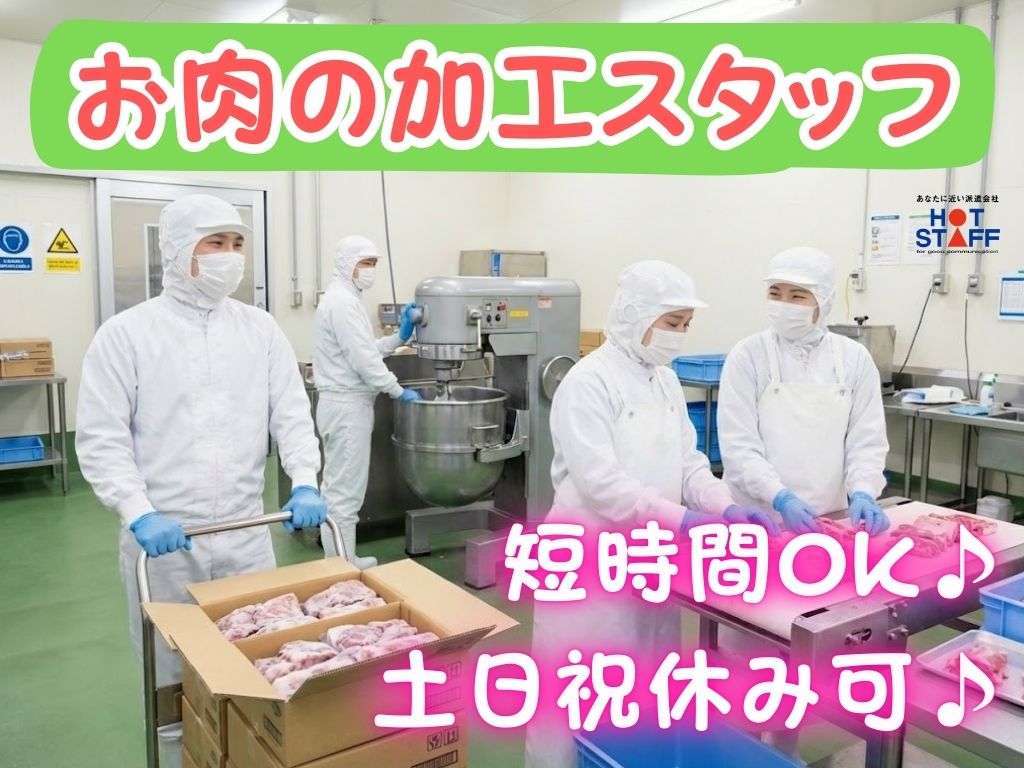8時や9時スタートの相談OK/午前・午後のみも可/年間休日120日以上《お肉の投入・カット・梱包!》