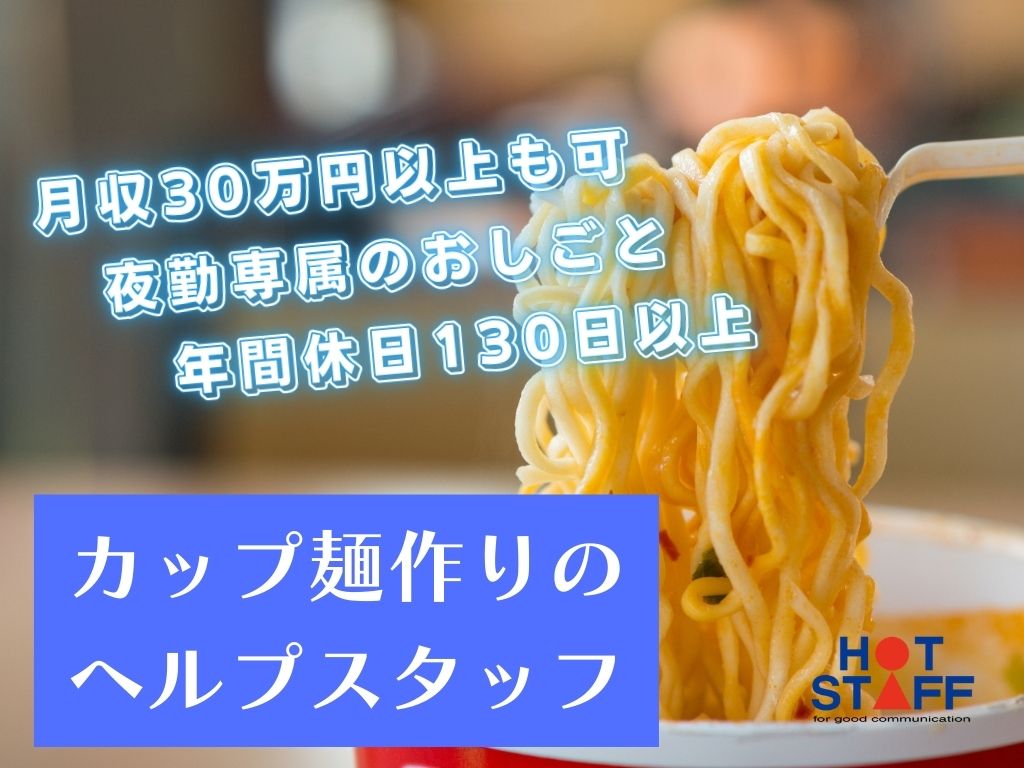 《カップ麺作りのヘルプスタッフ》月収30万円以上も可/夜勤専属/完全土日祝休み+年間休日130日以上