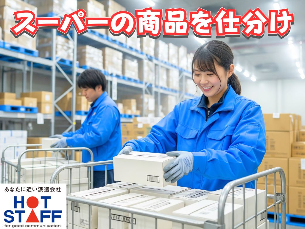 《スーパーの商品を仕分け》時短や週3日休みも相談OK/平日休みあり/残業少なめ/8:30~17:30