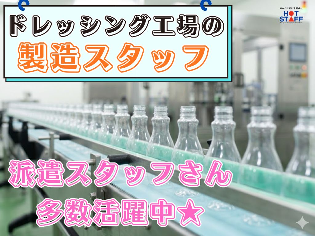《ドレッシング工場でキャップの補充などの補助◎》基本軽作業/三交替制/未経験OK/キレイな職場