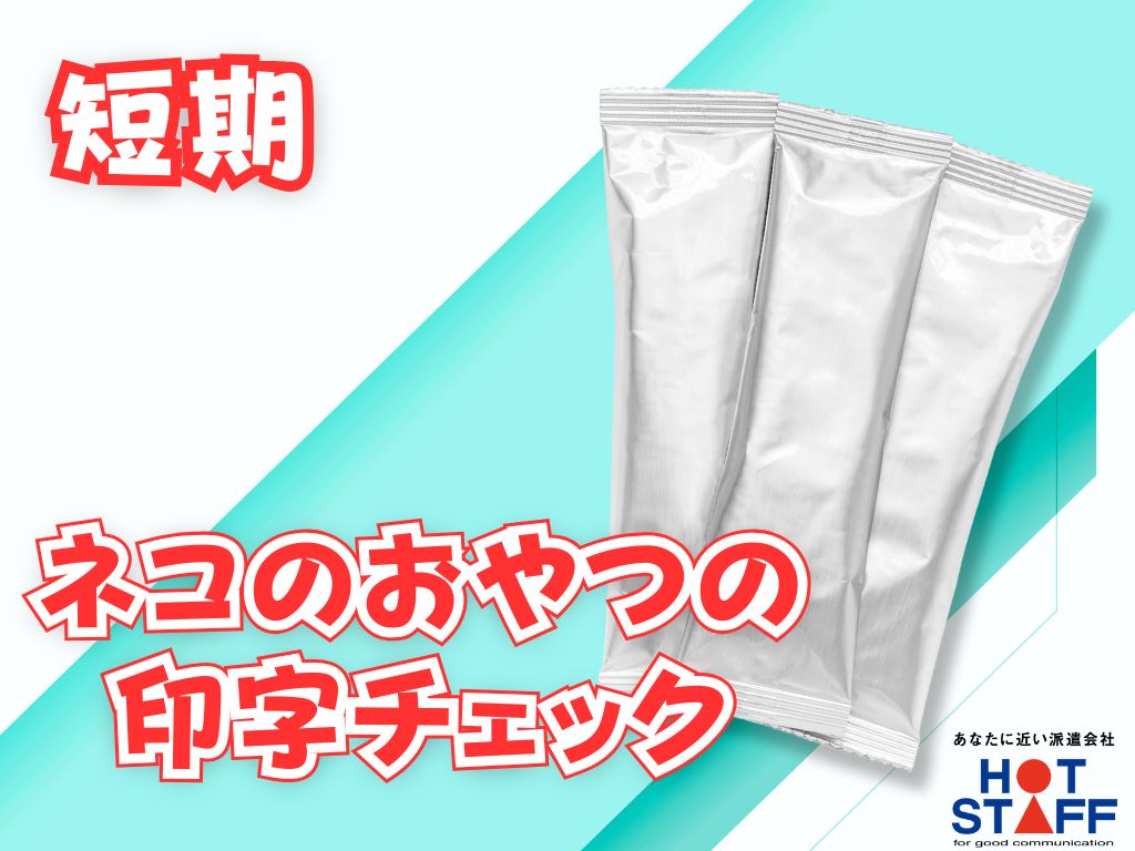 《ネコのおやつの印字チェックと袋詰め》3月末までの短期バイト/土日祝完全休み/日勤・8:30~