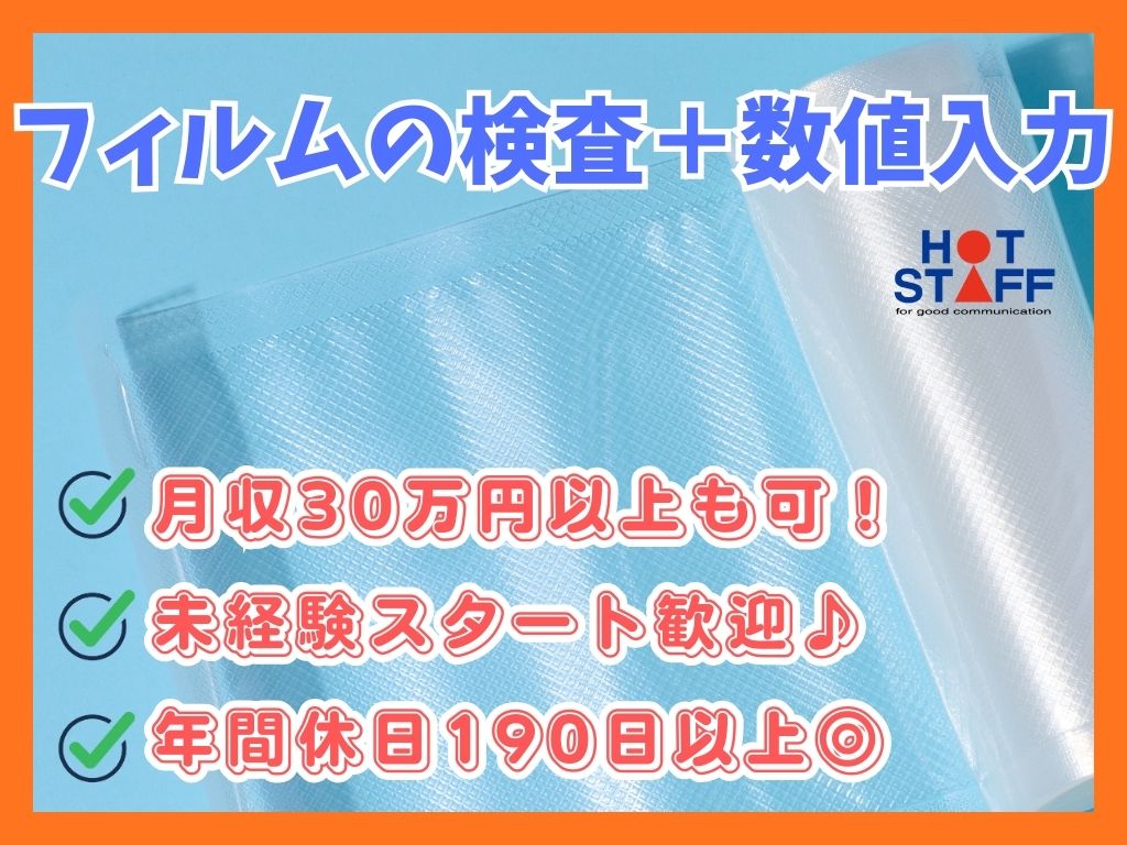 《フィルムの検査+数値入力★》月収30万円以上も可/未経験歓迎/年間休日190日以上/2交替♪