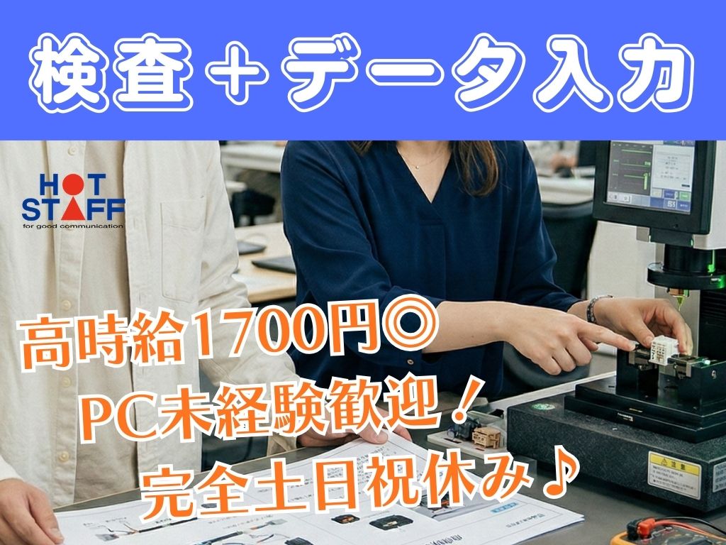 《部品の検査+データ入力♪》パソコン未経験OK/完全土日祝休み/8:30~17:30+残業任意★