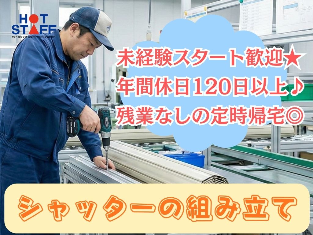 《シャッターの組み立て♪》未経験スタート歓迎/年間休日120日以上/8:30〜17:30+残業なし♪