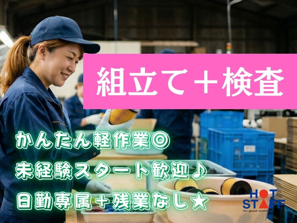 《フィルターの組立て+検査♪》かんたん軽作業/未経験歓迎/土日休み/8:15~17:15+残業なし◎