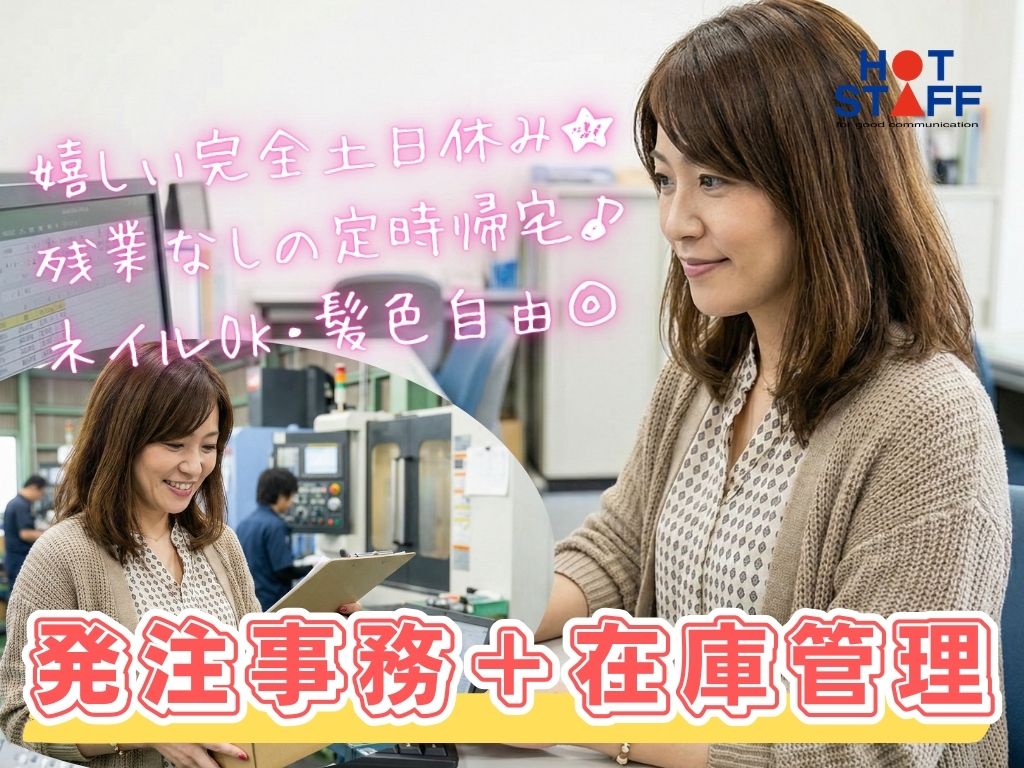 《部品の発注事務+在庫管理♪》完全土日休み/8:00〜17:00+残業なし/ネイルOK・髪色自由★